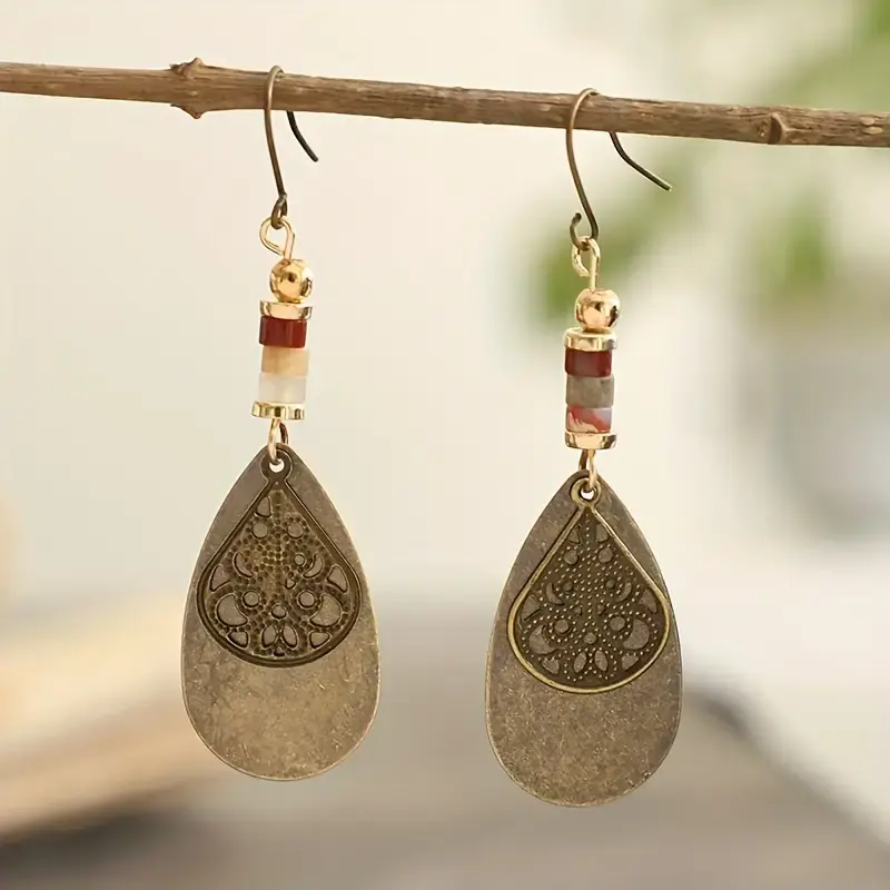 Vintage Water Drop Hollow Bronze Earrings