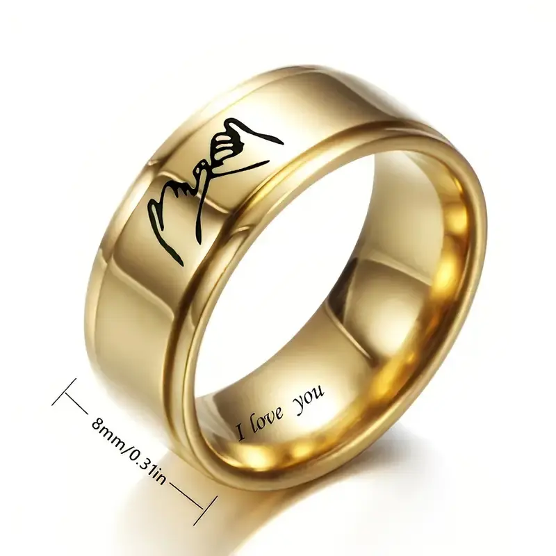Titanium Steel 8MM Pull Hook Oath I Love You Stainless Steel Ring